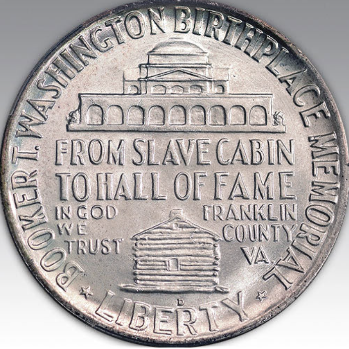 The obverse features a stunning portrait of Booker T. Washington, an influential educator and advocate for African American advancement in the early 20th century. The details of his likeness are sharp and well-defined, capturing the essence of his legacy with a level of artistry that is both respectful and striking.